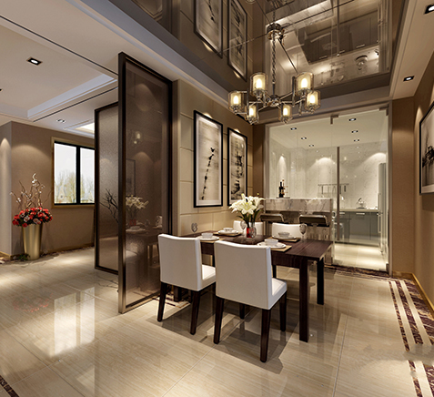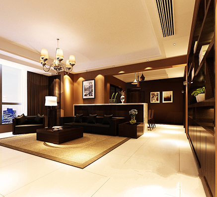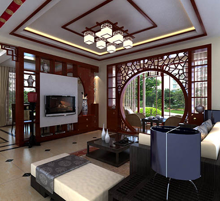 是以中國(guó)傳統(tǒng)文化作為背景,在色彩搭配上以黑、紅、為主,室內(nèi)多采用對(duì)稱(chēng)式的布局方式,格調(diào)高雅,造型簡(jiǎn)樸優(yōu)美,色彩濃重而成熟。
